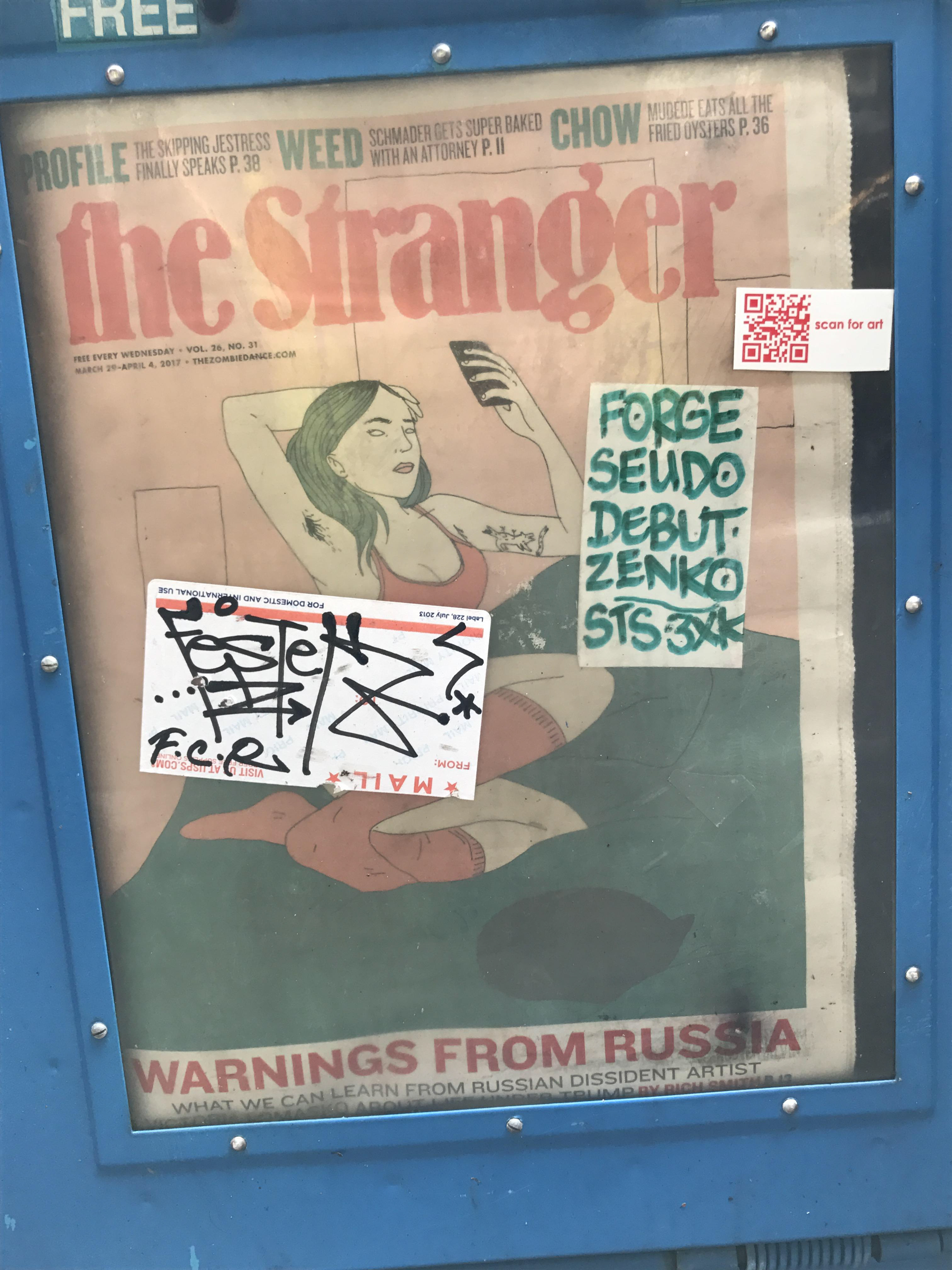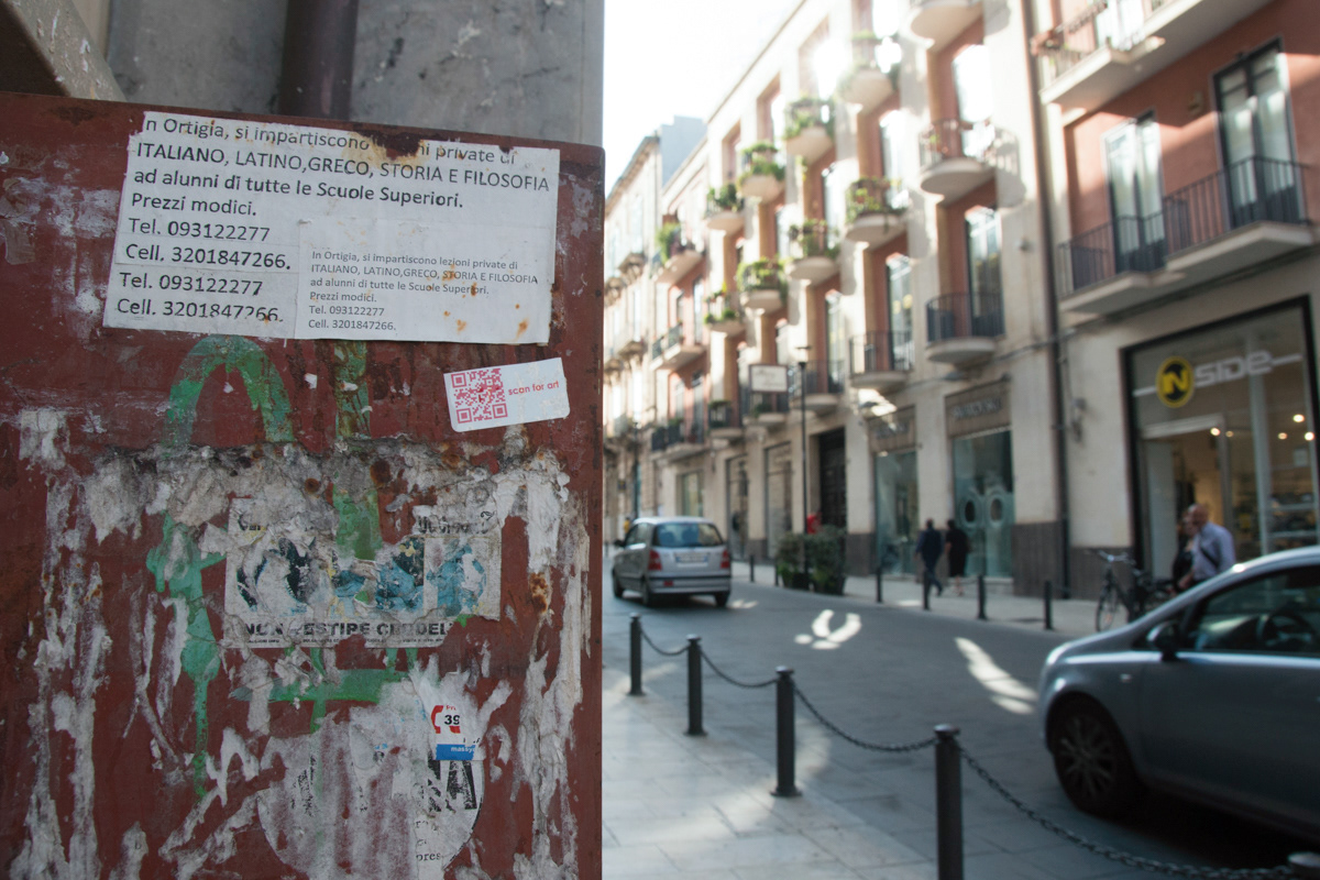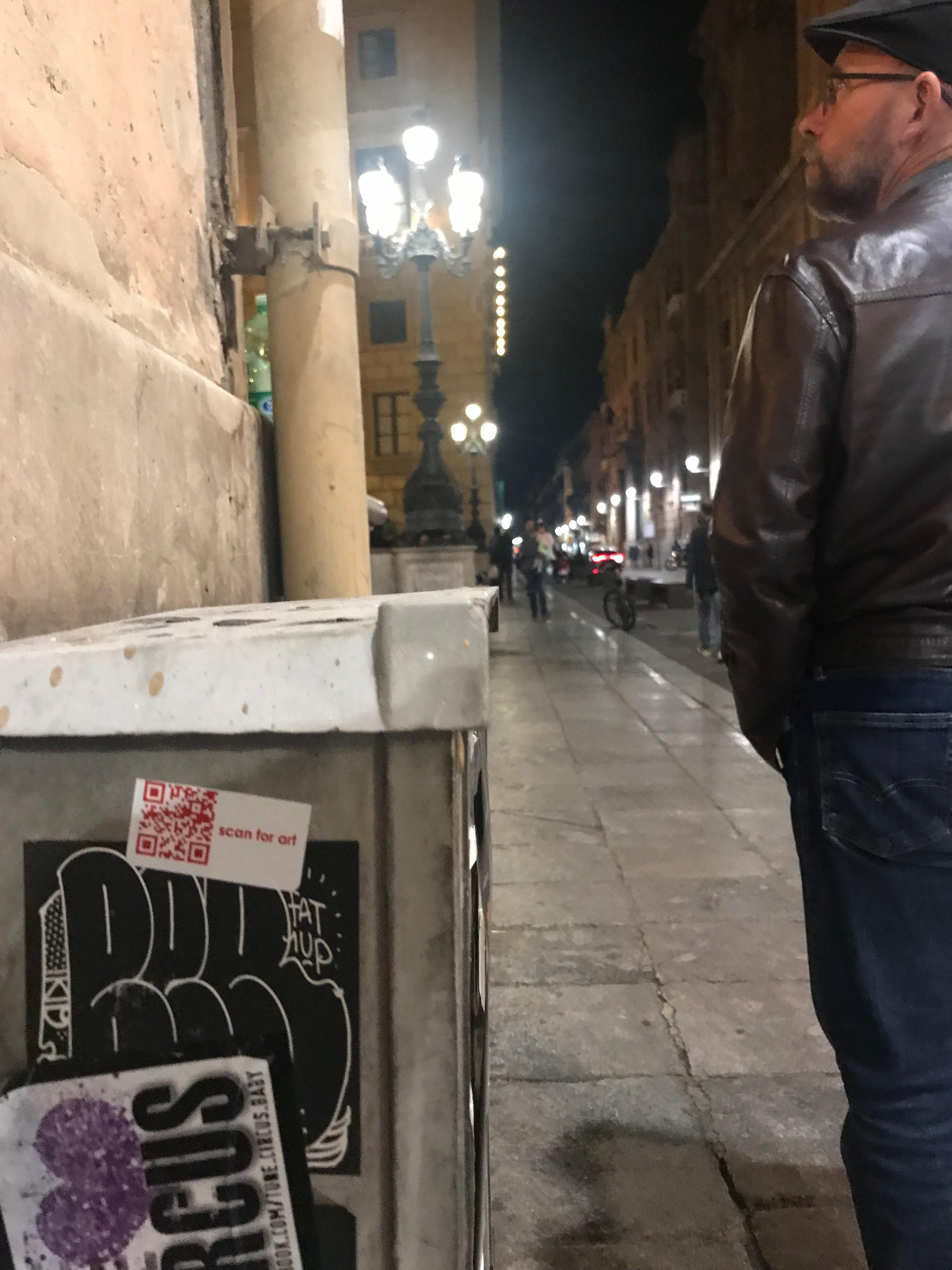 QR codes printed on red stickers with the words scan for art are placed all over the world on bike racks sign posts mixed in with other cultural statements. There are three different odes taking you to short video that change and rotate with time, creating small personal experiences for the curious viewer.