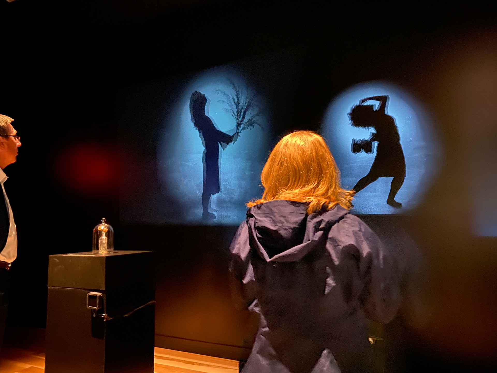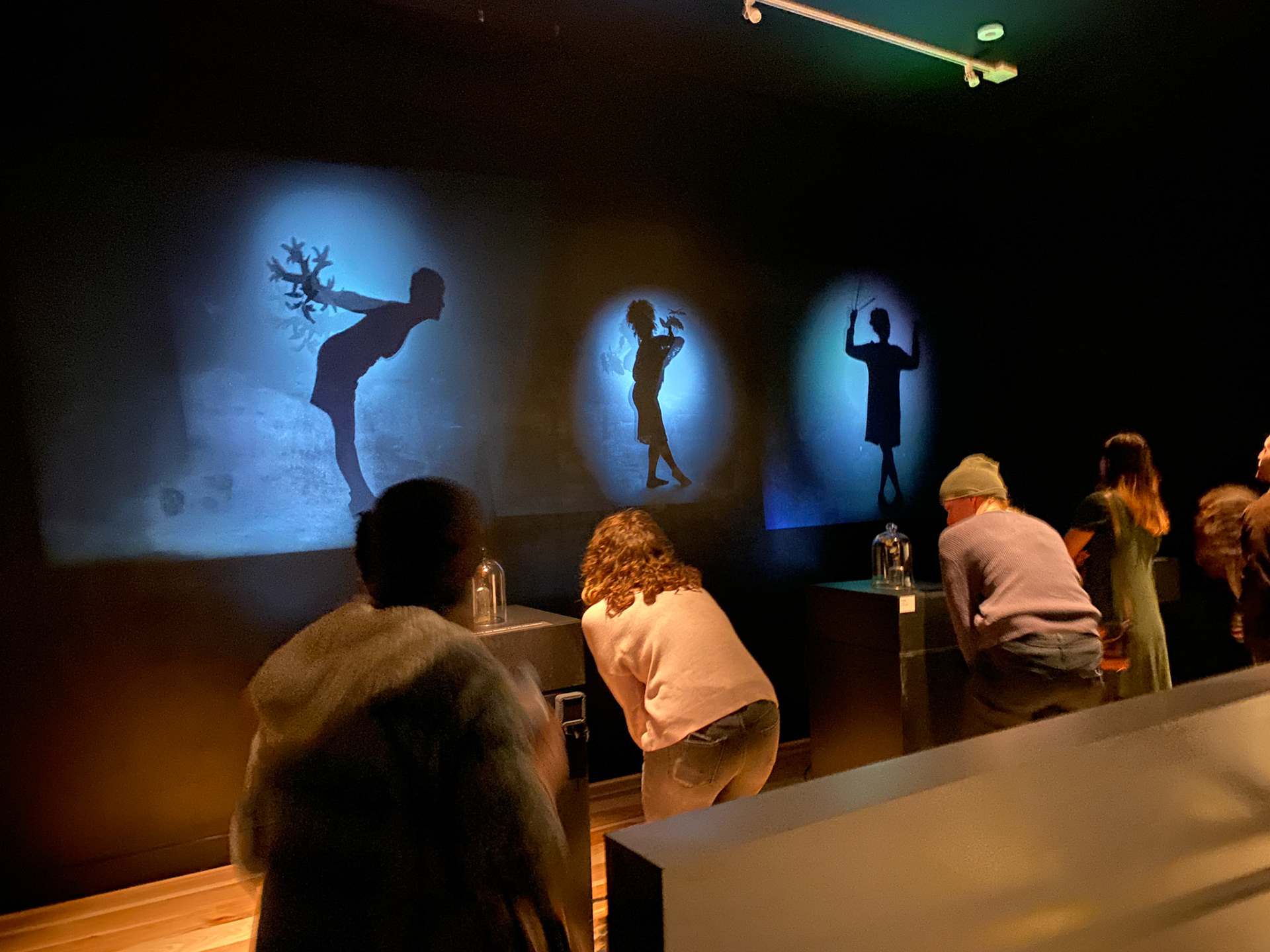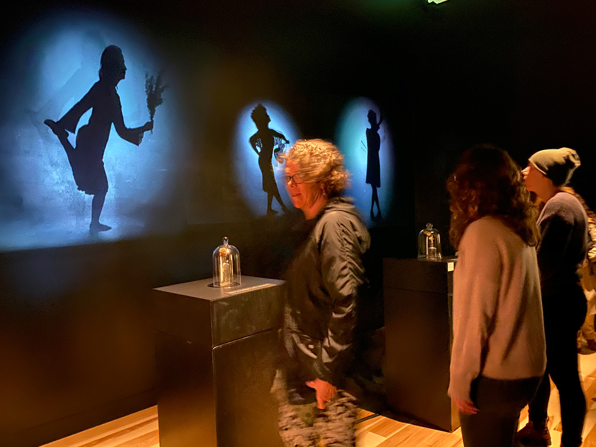 This installation reveals intertwining narratives that remind us how we navigate forward through time and backward through memory. When activated by the viewers location silhouetted figures frolic on the walls before us creating an immersive experience both intellectual and sensory. These female figures visually speak to issues of domesticity, sexuality, and independence. The experience is such that it triggers emotions, recollections, and the mundane thoughts that occupy our everyday minds. I hope the audience is reminded of our shared humanity, our often unconscious motivations, and the outer manifestations of our inner state.